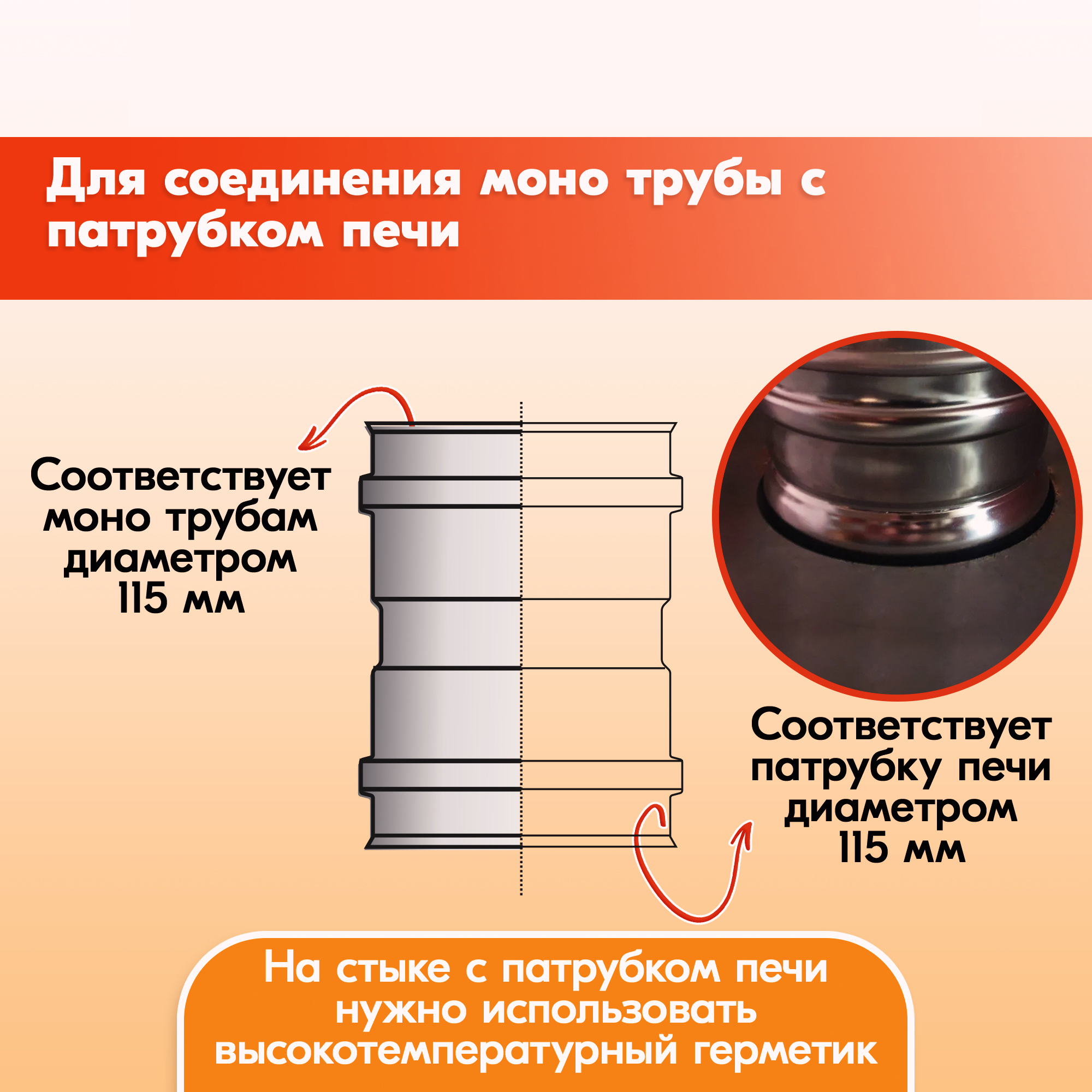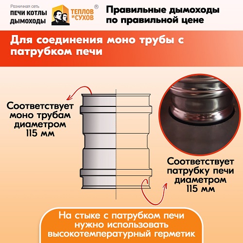 - на стыке с патрубком печи нужно использовать высокоградусный герметик.