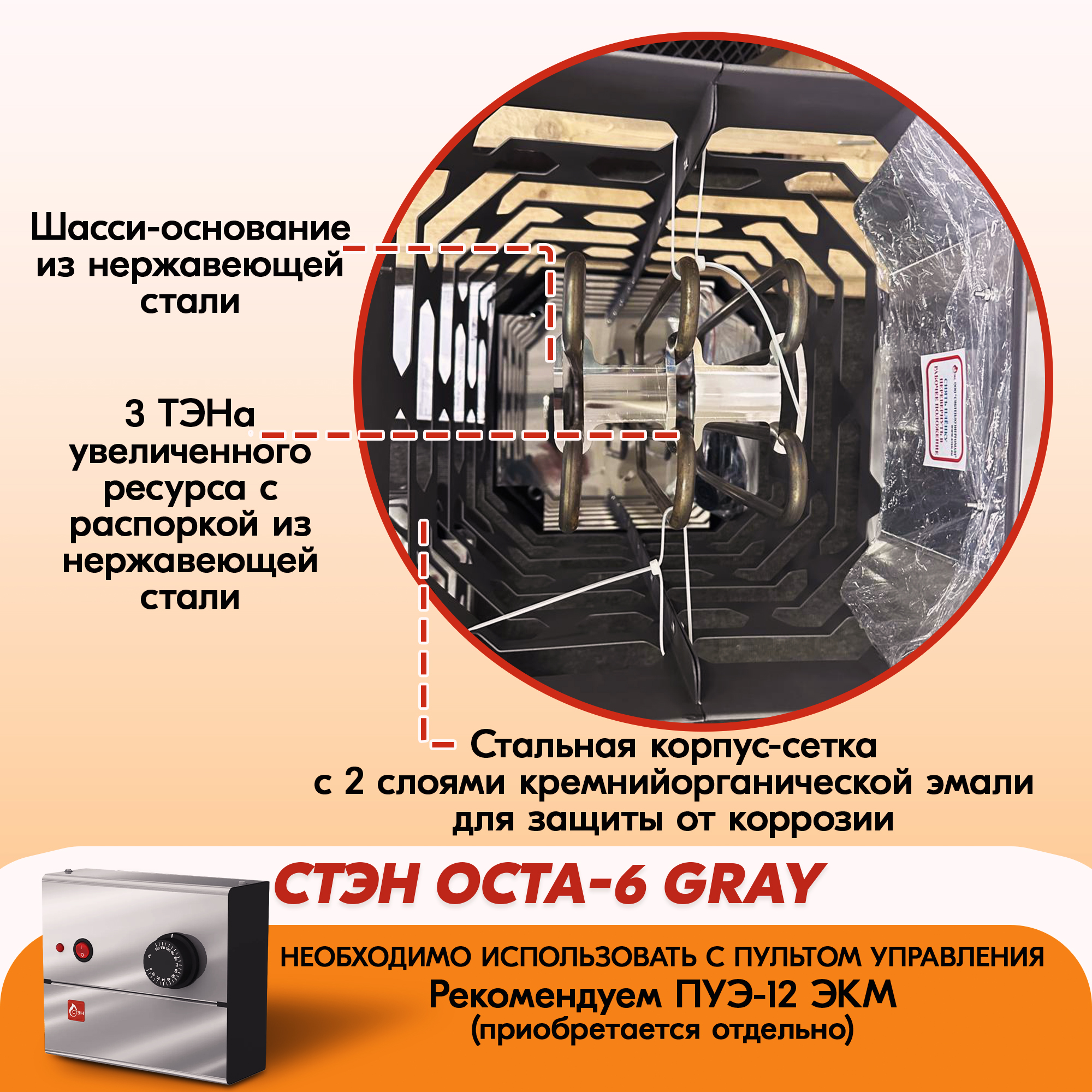 Электрическая каменка СТЭН ЭКМ 6 Octa gray в Нижнем Новгороде | Доставка по России