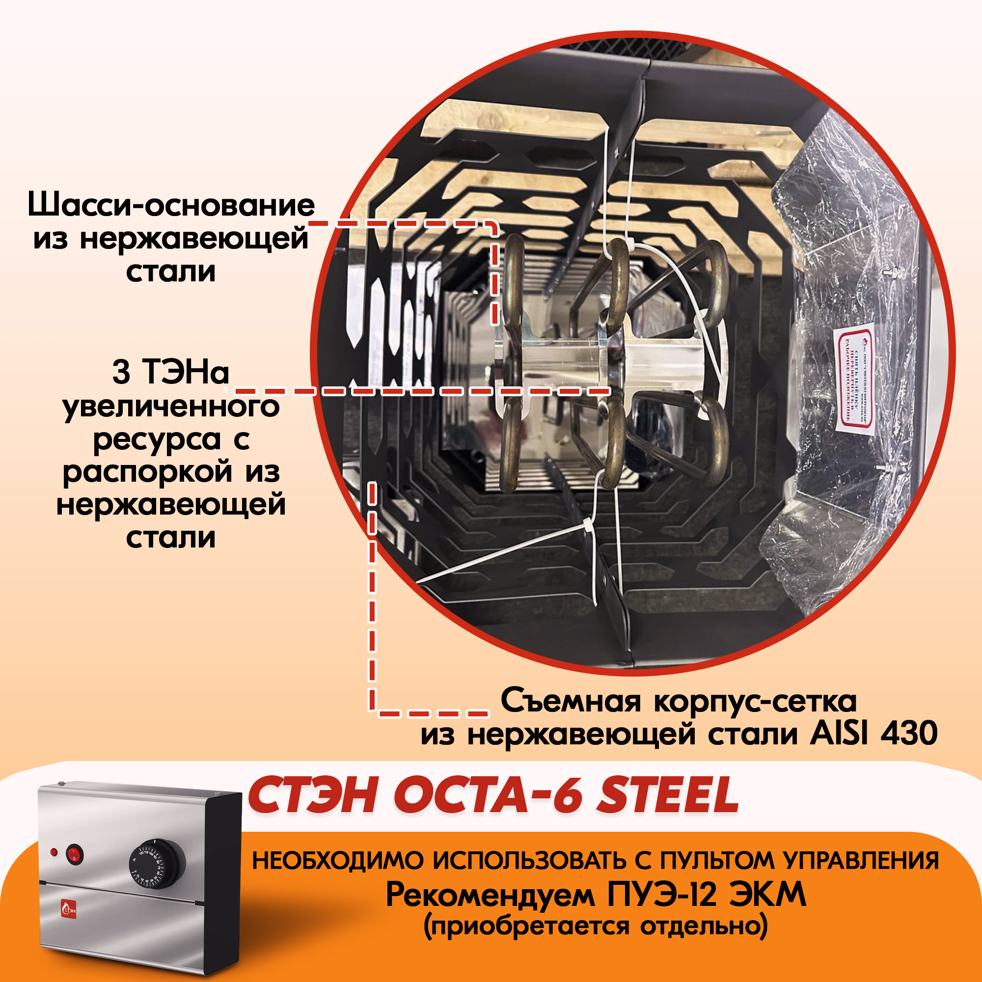 Электрическая каменка СТЭН ЭКМ 6 Octa steel в Нижнем Новгороде | Доставка по России