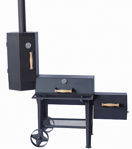 Все узлы смокера выполнены из 3-х миллиметровой высококачественной стали. Общий вес установки составляет более 100 кг.