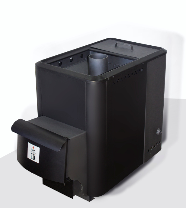Компактная, надежная конструкция обеспечивает отличный пар в бане площадью до 20 метров. Открытая каменка вмешает 50-60 кг камней. Топится углем или дровами. Встроеннный бак обеспечивает необходимое для купания количество горячей воды.