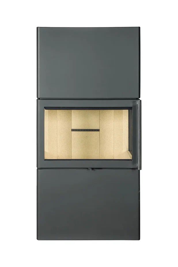 Камин покрыт высококачественной черной теплостойкой краской подчеркивающей его строгие формы.