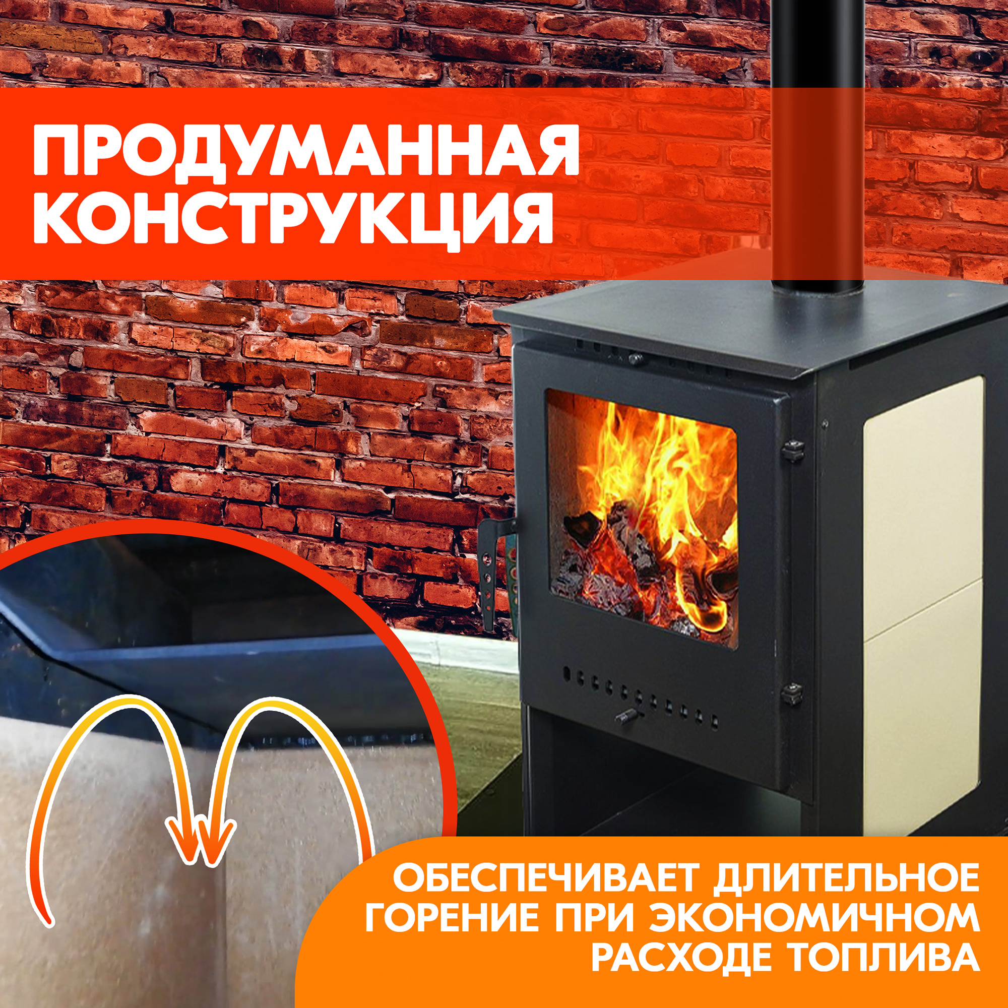 Благодаря стальному корпусу, печка быстро прогревает воздух в помещении.