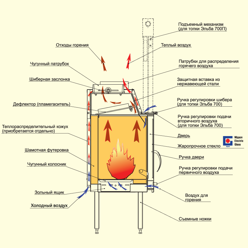 Съемные регулируемые ножки в комплекте с топкой.