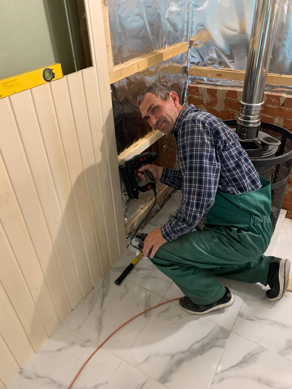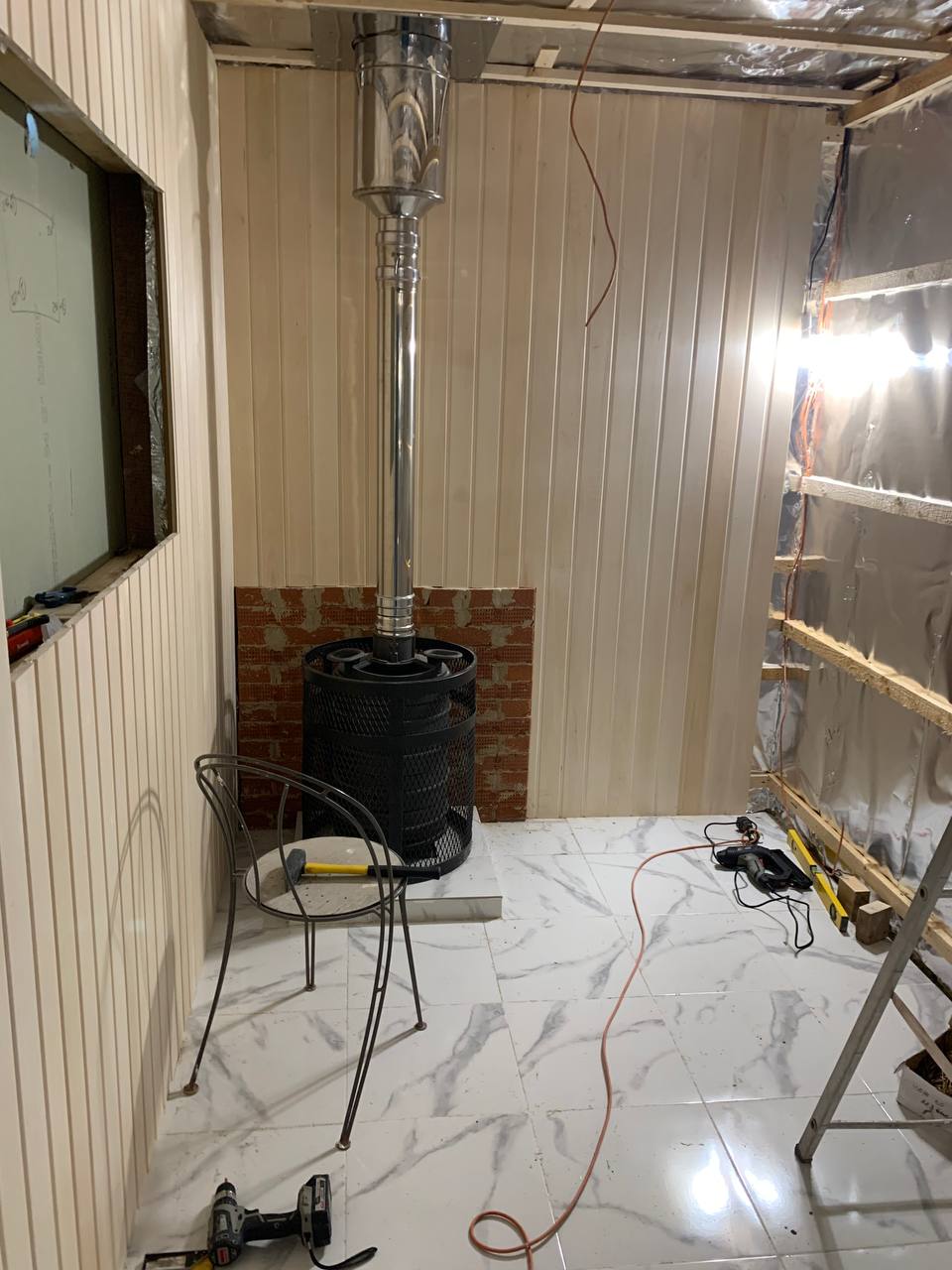 Монтаж банной GFS с установка дымохода, кладка портала
